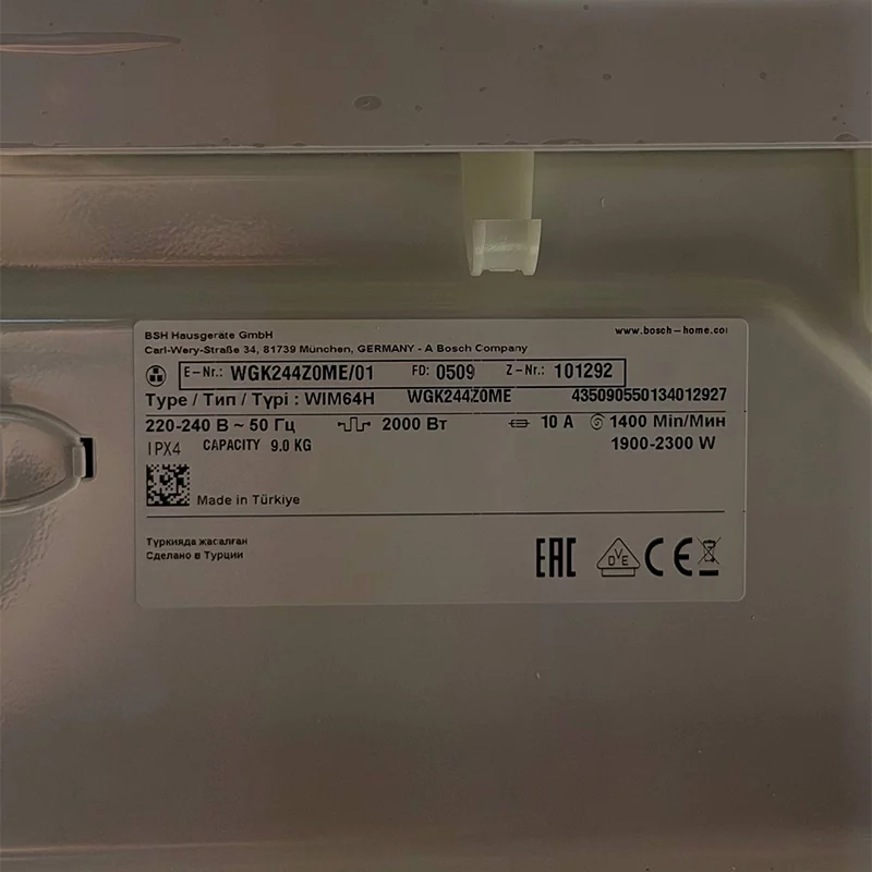 مشخصات فنی لباسشویی 9 کیلویی بوش سری 6 ترکیه سفید مدل WGK22ZOME