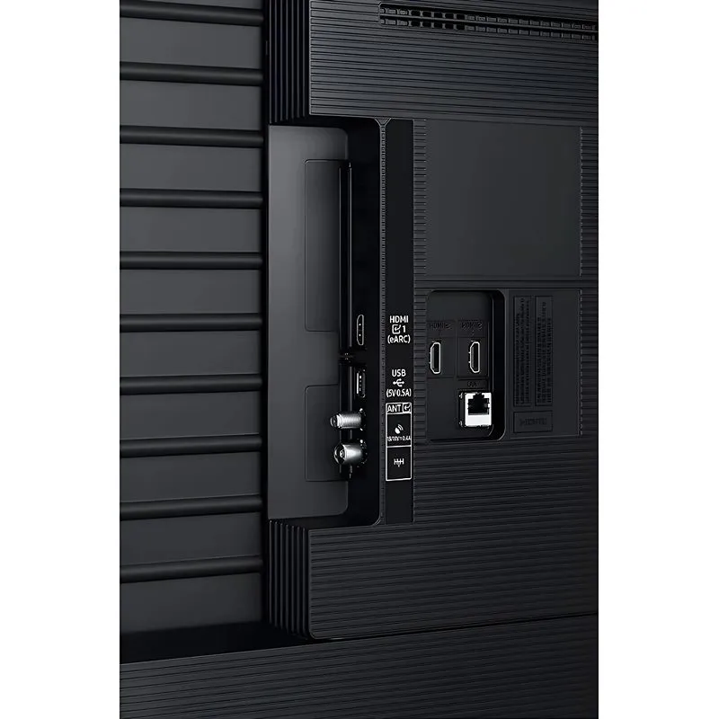این تلویزیون با ظاهری شیک و طراحی مدرن تولید شده و به خوبی میتواند دکور خانهتان را زیباتر کند. سامسونگ در این مدل از سبک طراحی جدیدی به نام Metal Stream استفاده کرده که از شکل بدنهی هواپیما الهام گرفته شده است. قاب و بدنه آن از فلز ساخته شدهاند و استحکام بالایی دارند. البته ضخامت بدنه نسبت به مدل سال قبل کمی بیشتر شده و حدود 7.66 سانتیمتر است، اما همچنان برای نصب روی دیوار مناسب است و ظاهر جمعوجوری دارد. البته هنگام نصب باید در نظر داشت که دو پورت HDMI در قسمت پشت دستگاه قرار دارند و ممکن است دسترسی به آنها کمی دشوار باشد.