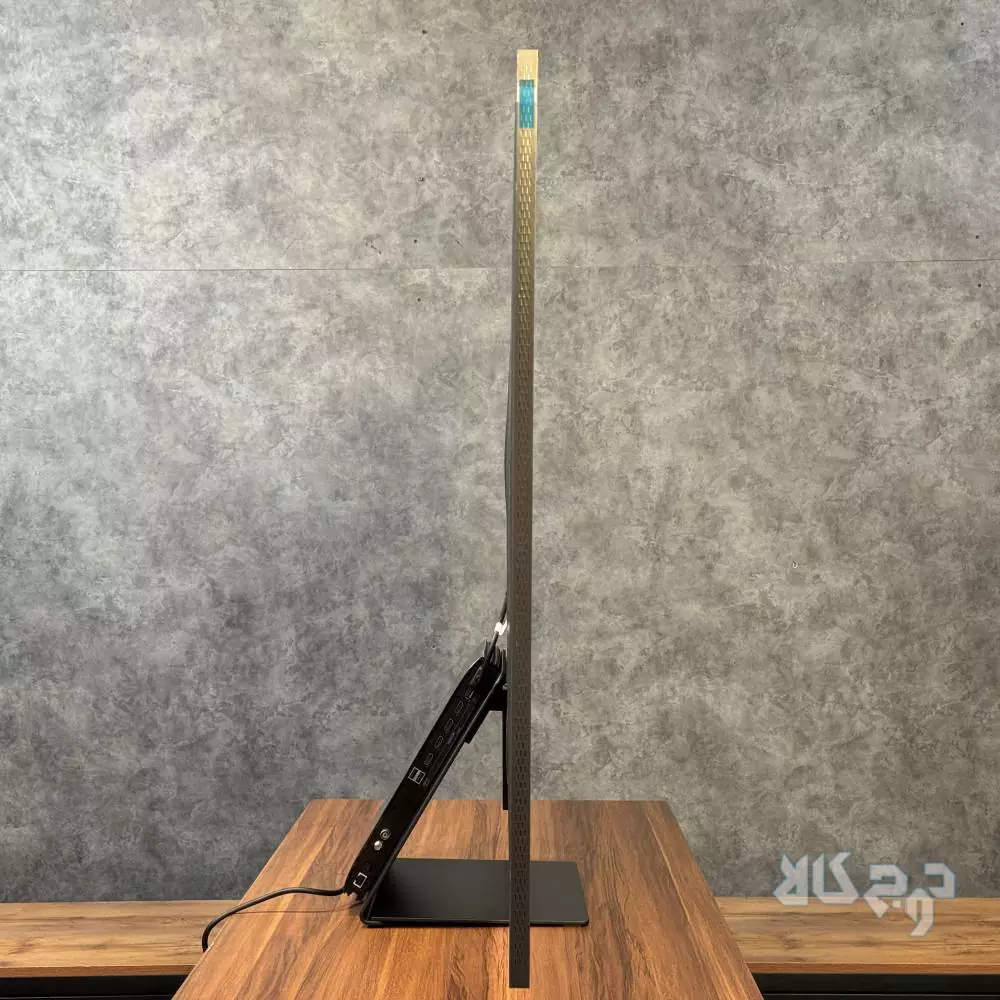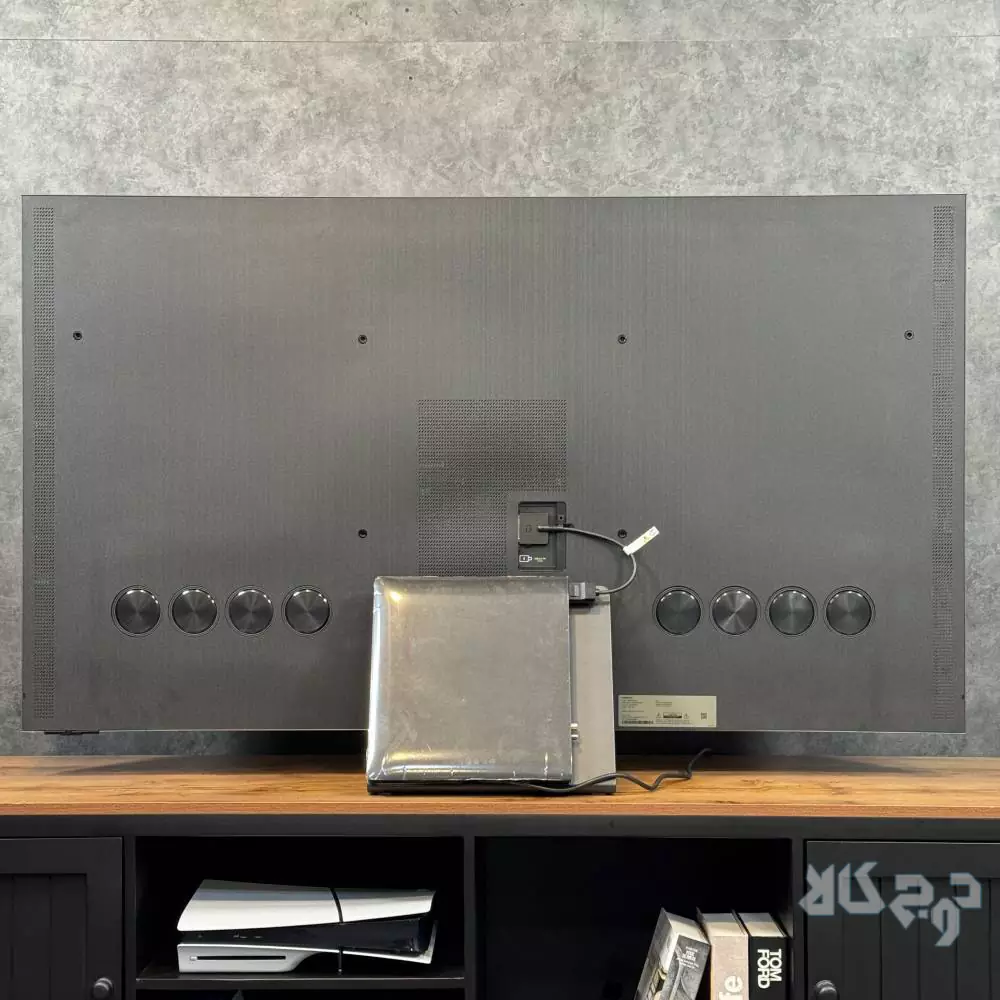 کیفیت ساخت و مواد اولیه: بدنه یکپارچه و فوقالعاده باریک دستگاه که از فلز برسخورده باکیفیت و پلیمرهای پیشرفته ساخته شده، حس یک کالای لوکس، مستحکم و بادوام را به خوبی منتقل میکند. ضخامت یکنواخت و بسیار کم آن در تمام سطح پشتی، امکان نصب کاملاً تخت بر روی دیوار، با استفاده از پایه دیواری Slim Fit را فراهم میآورد، به طوری که تلویزیون همچون یک تابلوی هنری دیجیتال با دیوار یکی میشود و به عنصری جداییناپذیر از دکوراسیون مدرن منزل شما تبدیل میگردد. هر جزئیات، از بافت فلز تا دقت برشها، نشان دهنده کیفیت و مهندسی دقیق است.