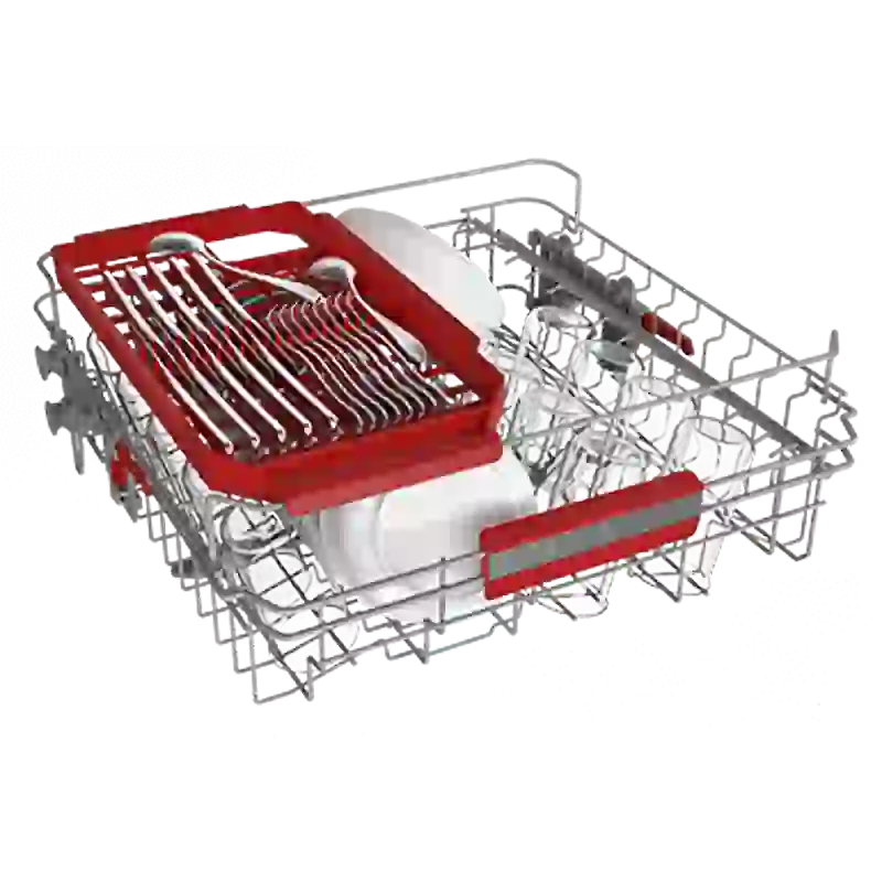 فضای داخلی توشیبا DW-14F2ME-BS، از دو سبد اصلی تشکیل شده است. سبد بالایی مخصوص ظروف کوچکتر مانند لیوان، فنجان و کاسه طراحی شده و روی آن یک سبد جداگانه برای قاشق، چنگال و کارد قرار گرفته است. این سبد به گونهای ساخته شده که میتوانید آن را به سمت چپ یا راست حرکت دهید تا در زمان چیدن ظروف بزرگتر در همان طبقه مشکلی ایجاد نشود. حتی فنجانهای کوچک مانند فنجان قهوه هم به راحتی در این قسمت جا میگیرند. در مقابل سبد پایینی هم برای ظروف بزرگتر مثل قابلمهها و بشقابهای بزرگتر است و فضای کافی برای قرار دادن این ظروف فراهم میکند. هر دو سبد به صورت ریلی طراحی شدهاند تا به راحتی بیرون کشیده شوند و بتوان ظروف را بدون زحمت در آنها قرار داد یا خارج کرد.