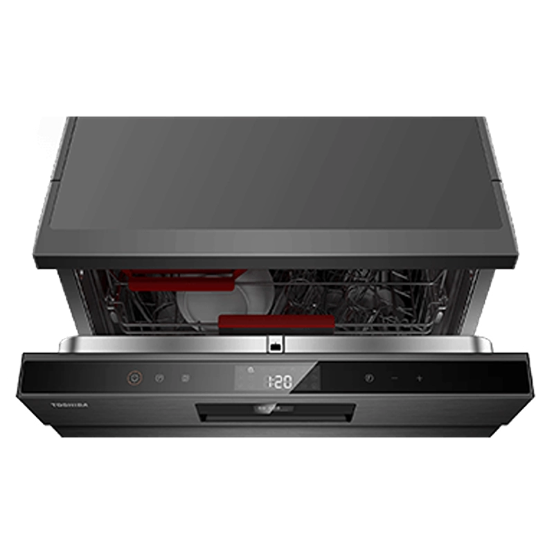 ماشین ظرفشویی مشکی توشیبا مدل DW-14F2ME-BS با ظرفیت 14 نفره دو مانیتوره