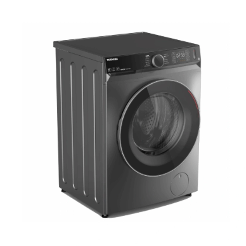 ماشین لباسشویی سیلور مشکی(Morandi Grey) رنگ توشیبا TWD-BM130GF4B-MG طراحی مینیمال و مدرن، جلوهای لوکس و چشمنواز به آشپزخانه شما میبخشد. بدنه دستگاه از فلز ضدزنگ و باکیفیت ساخته شده که مقاومت بالایی در برابر رطوبت و خوردگی دارد و طول عمر بالای آن را تضمین میکند. درب بزرگ دستگاه از جلو و از جنس شیشه حرارتدیده ساخته شده که با حاشیهای تیره، تضاد رنگی زیبایی ایجاد کرده است. این درب با زاویه باز شدن مناسب، امکان بارگیری و تخلیه آسان اقلام بزرگ مانند پتو را فراهم میکند.