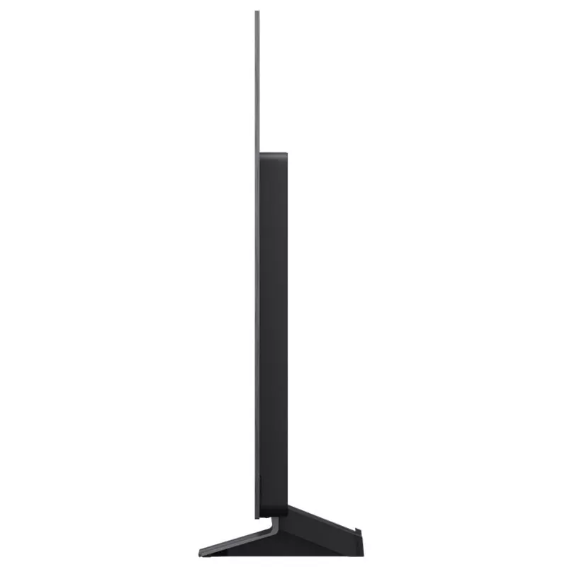 تلویزیون ال جی C5 با ضخامت بسیار کم و بدنهای که در بخش بالایی به باریکی یک ورق کاغذ میرسد، ظاهری فوقالعاده شیک و مدرن دارد. حاشیههای تقریباً نامرئی اطراف نمایشگر باعث میشوند تصویر در فضا شناور به نظر برسد و تمام تمرکز بیننده معطوف به محتوای در حال پخش باشد. بدنه دستگاه از مواد باکیفیت ساخته شده و رنگ مشکی مات آن به راحتی با هر دکوراسیونی هماهنگ میشود. این تلویزیون بر روی یک پایه مرکزی فلزی و مستحکم قرار گرفته که طراحی زیبایی دارد. این نوع پایه برای قرار دادن تلویزیون روی میزهای نهچندان عریض ایدهآل است، هرچند ممکن است به دلیل فرم خاص خود، جلوی برخی از ساندبارهای بلند را بگیرد. البته الجی برای سایزهای مختلف این سری، طراحی پایه را بهینه کرده است. در پشت تلویزیون، تمام پورتها به صورت هوشمندانهای در بخش کناری قرار گرفتهاند تا در صورت نصب روی دیوار، دسترسی به آنها آسان باشد. همچنین یک بخش مخصوص برای مدیریت کابلها تعبیه شده تا از شلوغی و بینظمی سیمها در پشت دستگاه جلوگیری شود.