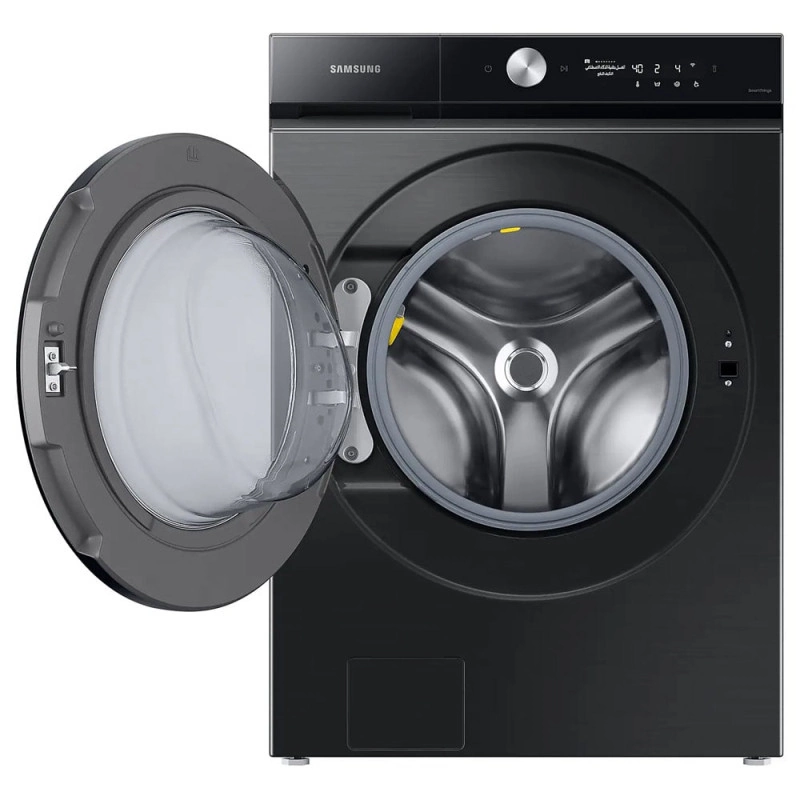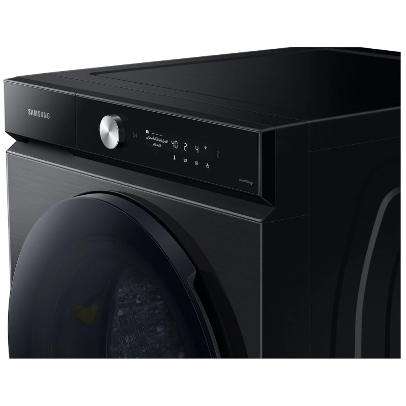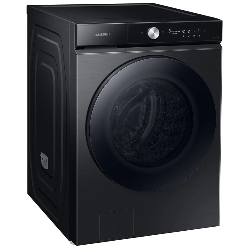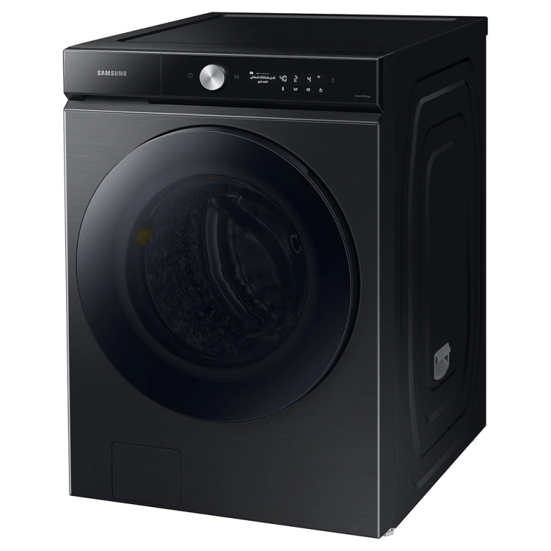 ماشین لباسشویی مشکی سامسونگ WD22B6400KV با پیروی از فلسفه طراحی Bespoke سامسونگ، ظاهری مینیمال، مدرن و چشمنواز دارد. رنگ مشکی مات بدنه با دکوراسیون آشپزخانههای امروزی هماهنگ شده و جلوهای لوکس به فضا میبخشد. پنل کنترل لمسی LED با رابط کاربری ساده و روان، انتخاب برنامهها و تنظیمات را بسیار آسان کرده است. درب بزرگ و عریض دستگاه نیز بارگیری و تخلیه لباسها، به ویژه اقلام حجیم را تسهیل میکند. ابعاد دقیق این دستگاه شامل عرض 686 میلیمتر، ارتفاع 984 میلیمتر و عمق 796 میلیمتر با وزن خالص 101 کیلوگرم است که با توجه به ظرفیت بالای آن، طراحی فشرده و بهینهای محسوب میشود.